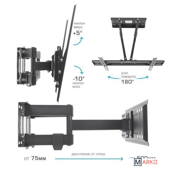 | Функциональные особенности | поворотный, кабель-канал, встроенный уровень |