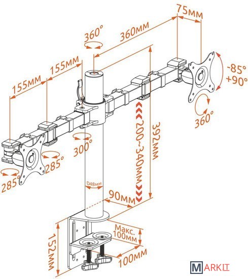 | Совместимая диагональ экрана | 10 — 32 " |