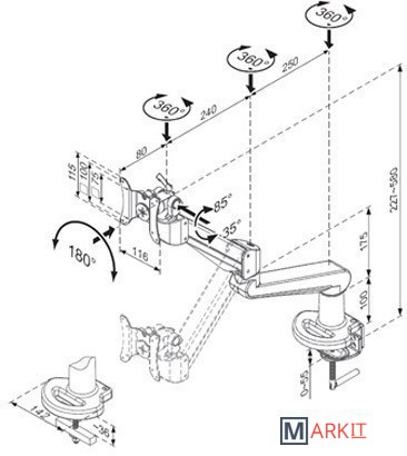 | Угол поворота (без ТВ) | 180 ° |
