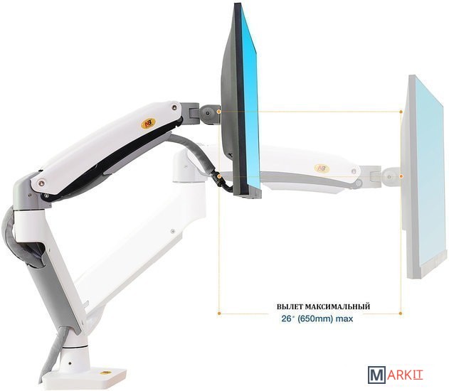 Функциональные особенности поворотный, с регулировкой высоты, кабель-канал, струбцинное крепление