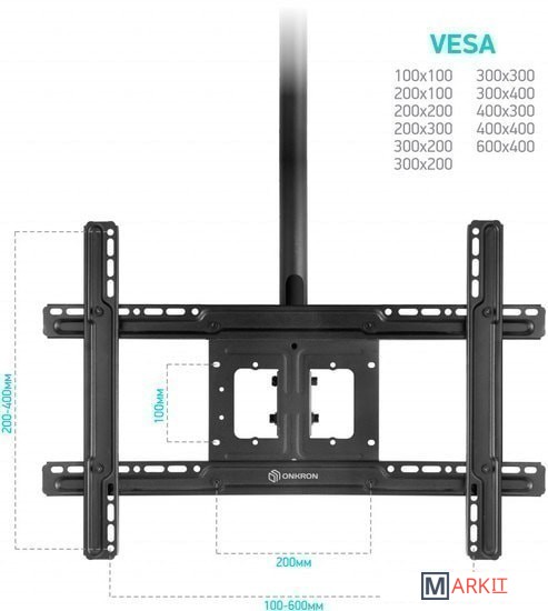 Совместимость с креплением VESA 100x100, 200x100, 200x200, 200x300, 300x200, 300x300, 300x400, 400x300, 400x400, 600x400
