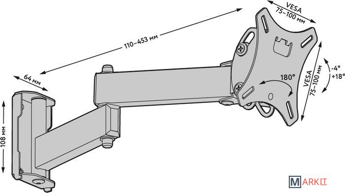 | Расстояние от стены (потолка) | 110 — 453 мм |