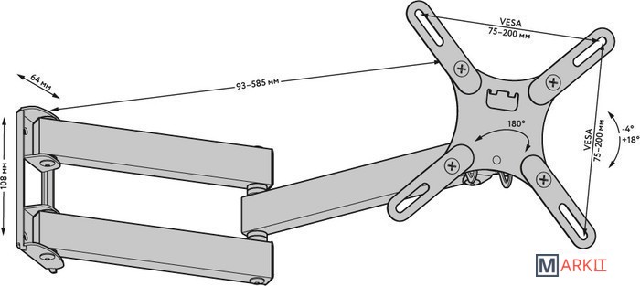 | Расстояние от стены (потолка) | 93 — 585 мм |