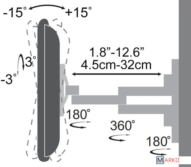 | Угол поворота (без ТВ) | 180 ° |