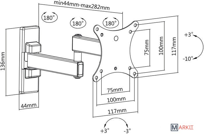 Расстояние от стены (потолка) 44 — 282 мм