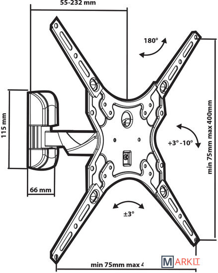 | Расстояние от стены (потолка) | 55 — 232 мм |