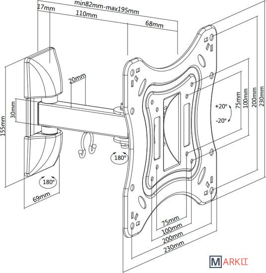 | Расстояние от стены (потолка) | 82 — 195 мм |