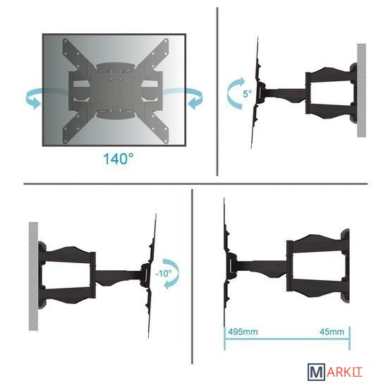 | Угол поворота (без ТВ) | 140 ° |