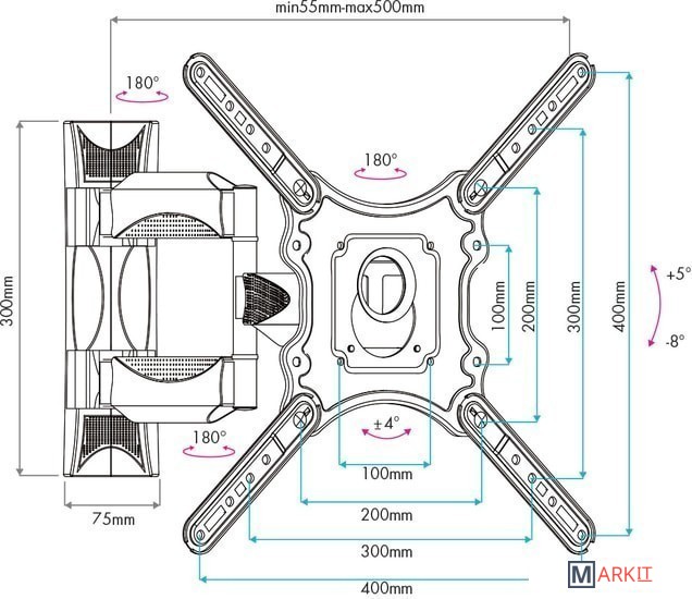 | Расстояние от стены (потолка) | 55 — 500 мм |