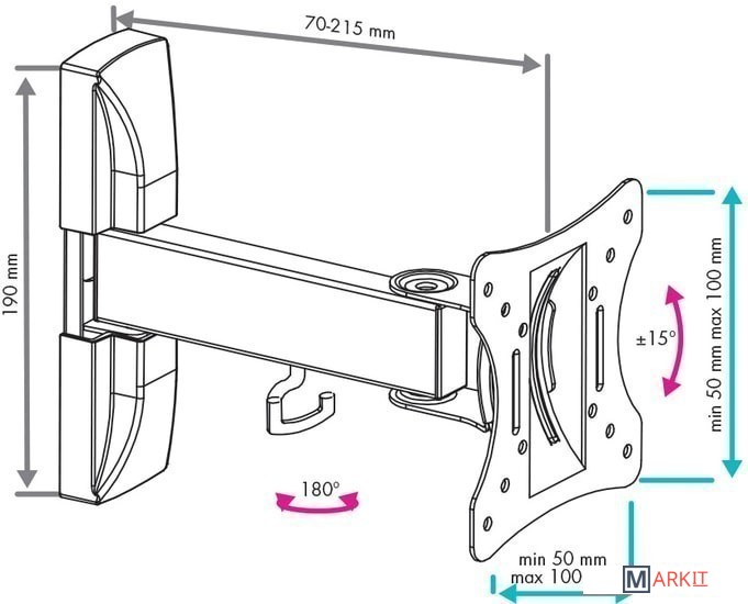 | Угол поворота (без ТВ) | 180 ° |