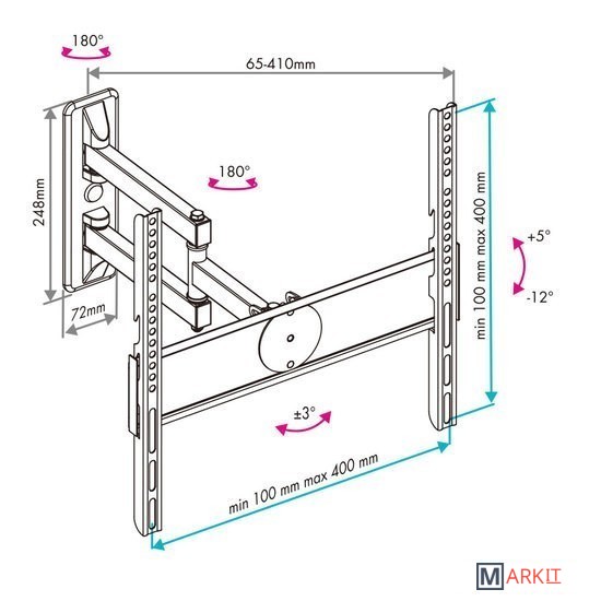 | Угол поворота (без ТВ) | 180 ° |
