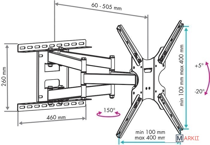 | Расстояние от стены (потолка) | 60 — 505 мм |