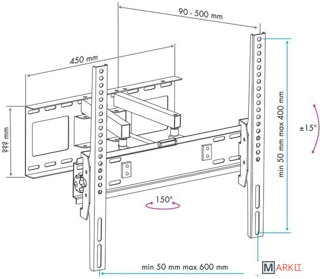 | Расстояние от стены (потолка) | 90 — 500 мм |
