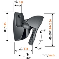 Настенный кронштейн VLB 500 предназначен для колонок объемного звучания и динамиков класса hi-fi массой до 5 кг. Это универсальная стойка для акустической системы с функцией поворота и наклона, что гарантирует оптимальное положение для прослушивания. Простота сборки; наличие в комплекте всех крепежных деталей.Поставляется в комплекте из 2 штук.