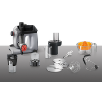 | Функции | мясорубка, блендер, цитрус-пресс, взбивание, смешивание, замешивание дрожжевого теста, терка, шинковка, ломтерезка, помол круп, кофе |