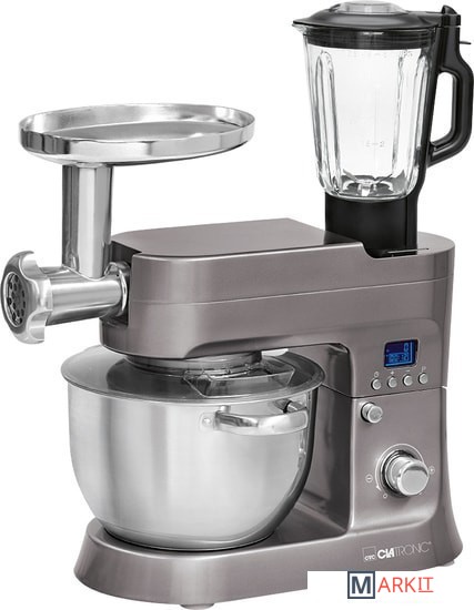 Электронный таймер / ЖК-дисплей с подсветкой.Электронный контроль скорости.Мясорубка: 3 решетки, насадка для колбас, насадка для печенья, насадки для макарон.