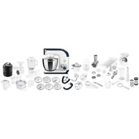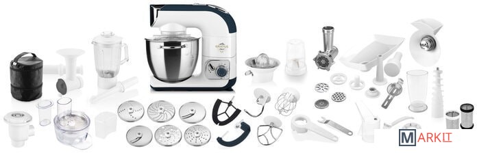 | Функции | мясорубка, блендер, цитрус-пресс, взбивание, смешивание, замешивание дрожжевого теста, измельчитель, рубка, терка, шинковка, ломтерезка, приготовление мороженого |