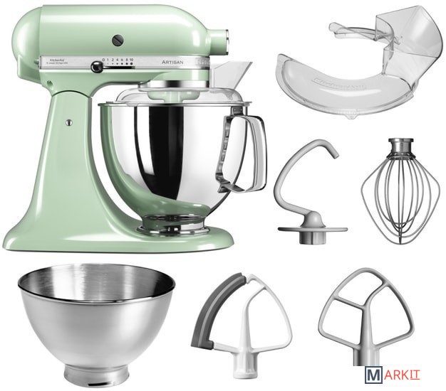 Чаша из нержавеющей стали объемом 4,8 лЧаша из нержавеющей стали объемом 3 лПрозрачный защитный ободВенчикКрюк для тестаЛопатка для смешиванияЛопатка с гибким ребром