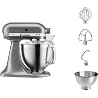 чаша из нержавеющей стали объемом 4,8 л;чаша из нержавеющей стали объемом 3 л;прозрачный защитный обод;венчик;крюк для теста;насадка для смешивания |