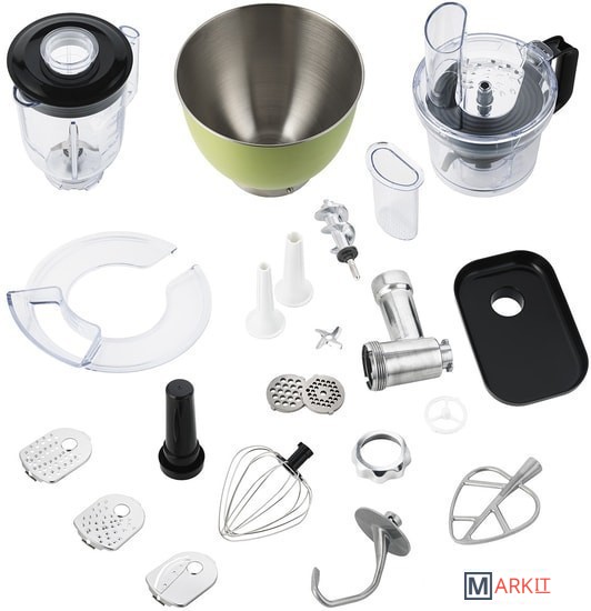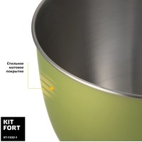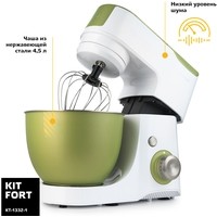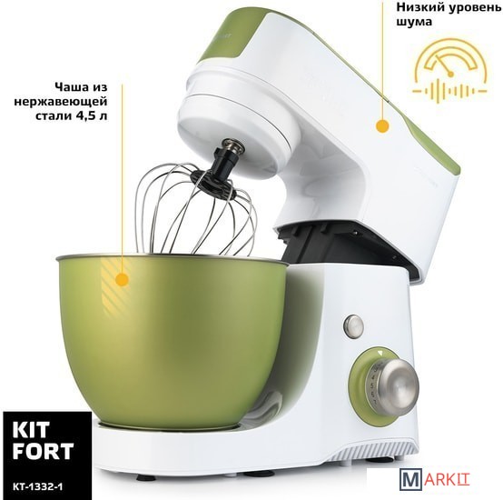 Многофункциональный планетарный миксер Kitfort КТ-1332 поможет вам смешать ингредиенты, взбить яичный белок или сливки, приготовить картофельное пюре, соус, крем, мусс, замесить жидкое тесто для блинов и крутое для пельменей и пирогов, перемолоть мясо на фарш, нашинковать овощи и фрукты и смешать ледяной коктейль или смузи. В комплекте миксера имеется блендер, комбайн и мясорубка, что превращает эту модель в универсальную кухонную машину «4 в 1».