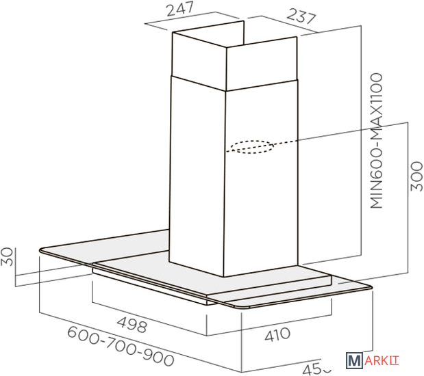 60 см (макс. 110 см с декоративным коробом) |