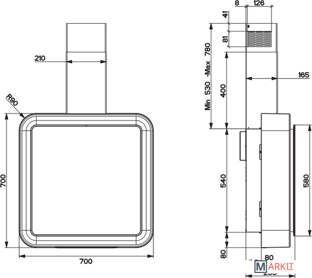Минимальная производительность отвода 180 куб. м/ч