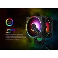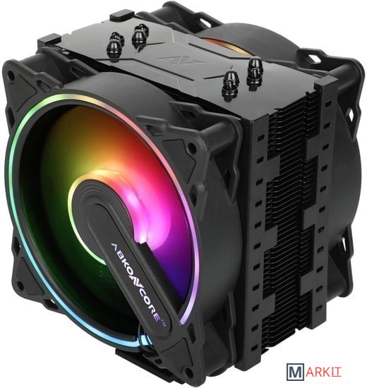 Кулер башенного типа Abkoncore Coolstorm T404B Dual SYNC с двумя вентиляторами и синхронизируемой ARGB подсветкой подходит для всех современных процессорных сокетов и обеспечивает отведение тепла в пределах 170 Вт.