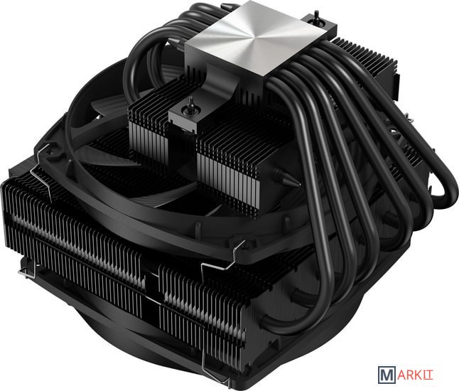 Dark Rock TF 2 оснащен шестью высокопроизводительными медными тепловыми трубками, которые оптимально распределяют тепло на пластины радиатора. Специальное черное покрытие с керамическими частицами обеспечивает идеальную передачу тепла.Конструкция Dark Rock TF 2 с двумя алюминиевыми радиаторами обеспечивает внушительное пространство для установки модулей RAM высотой до 49мм. Кулер укомплектован двумя вентиляторами, но также возможно использование лишь одного вентилятора для дополнительной экономии пространства и еще более тихой работы.