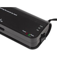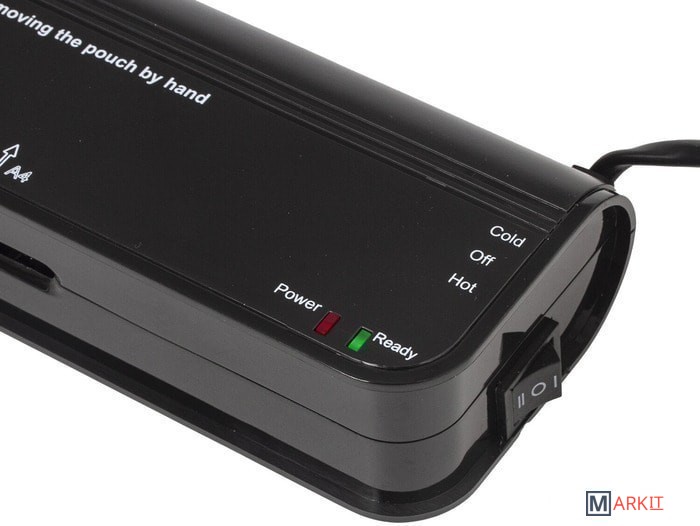Способен заламинировать документы различных размеров от визитки до листа формата А4. Ламинирует 1 документ формата А4 в пакетах 2×75, 2×80, 2×100 и 2х125 мкм за 1 минуту. Кроме горячего ламинирования, данная модель оснащена также функцией холодного ламинирования. О готовности ламинатора к использованию укажет световой индикатор, который загорится зеленым. При этом ламинатор готов для работы с пленками толщиной 2×75, 2×80 мкм. Чтобы начать ламинировать объекты, используя пленку толщиной 2×100 и 2х125 мкм, и получить хороший результат, рекомендуется подождать еще 3-5 минут.