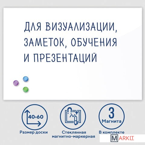 Markit » Офисные доски, флипчарты » Магнитно-маркерная доска BRAUBERG стеклянная 40x60 см (белый)