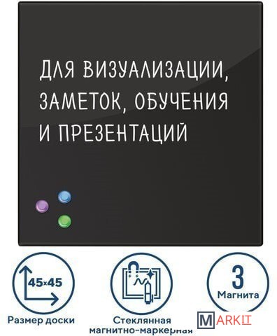 Markit » Офисные доски, флипчарты » Магнитно-маркерная доска BRAUBERG стеклянная 45x45 см (черный)