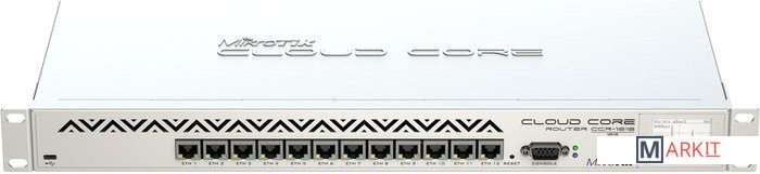 MikroTik CCR1016-12G является промышленным супер быстрым маршрутизатором с 16 ядерным процессором. Если вам нужно много миллионов пакетов в секунду - Cloud Core Router это ваш лучший выбор.Cloud Core Router работает на RouterOS, полнофункциональная операционная система маршрутизатора, которая постоянно совершенствовалась в течение пятнадцати лет. Динамическая маршрутизация, точки доступа, брандмауэр, MPLS, VPN, передовые качества обслуживания, балансировки нагрузки и связи в реальном времени, настройки и мониторинга - это только некоторые из огромного количества функций, поддерживаемых RouterOS.Устройство поставляется с корпусе 1U в 19" стойку, имеет двенадцать портов Gigabit Ethernet, последовательный консольный порт и кабель USB/microUSB.Комплектация Mikrotik CCR1016-12G:Корпус для монтажа в 19" стойку высотой 1U (уши в комплекте)Сенсорный LCD дисплейШнур Сord Power длиной 1,8 метраПереходник с USB-A на microUSB-B 15 см.Интерфейсы:- 12 Gigabit Ethernet 10/100/1000BASE-T, Auto-MDI/X- 1 microUSB (с питанием) для подключения накопителей, адаптеров(serial, ethernet), 3G и 4G модемов, беспроводных адаптеров- 1 serial порт DB9 RS232C- 2 SODIMM DDR3 слота с предустановленными 2x 1GB DDR3 (всего 2GB)Производительность:- 1,5 млн. пакетов в секунду standard forwarding- 17,8 млн. пакетов в секунду FastPath forwarding (скорость всех портов)- до 12 Gbit/s пропускная способностьУправление:- Console (SSH, Telnet, MAC Telnet)- Winbox- WebFig