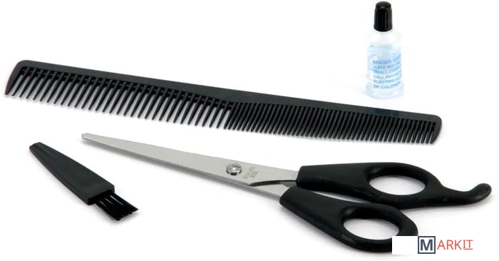 В комплекте масло, ножницы, расческа, щеточка для чистки