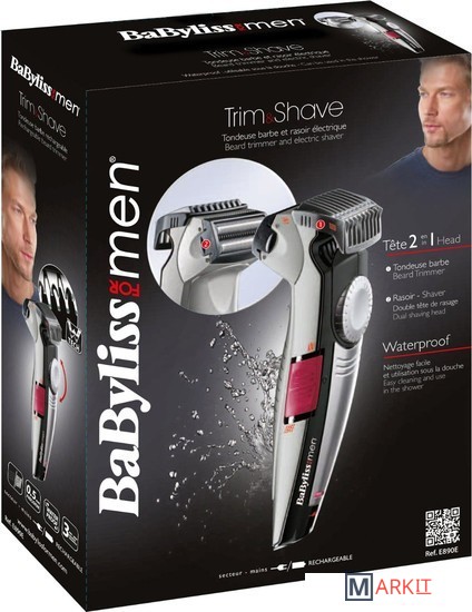Уход за модной 3-дневной щетиной стал частью ежедневного ритуала для большинства мужчин.Благодаря встроенной головке для бритья в триммере E890E можно легко менять свой образ, не меняя насадки и превращая бритьё в удовольствие.В триммере встроено удобное колесико для регулировки уровня длины с точностью до 0,5 мм и 21 позицией длины (от 0,5 до 15 мм).Неподвижные лезвия 34 мм выполнены из нержавеющей стали, а подвижные заточены 3D электрохимическим способом и оснащены технологией Wtech (благодаря инновационной геометрии лезвий в форме W для лучшего захвата волос).Триммер может работать как от сети, так и автономно до 45 минут использования. К тому же триммер для бороды BaByliss formen E890E влагостойкий, так что можете использовать его в душе или чистить под струей воды.