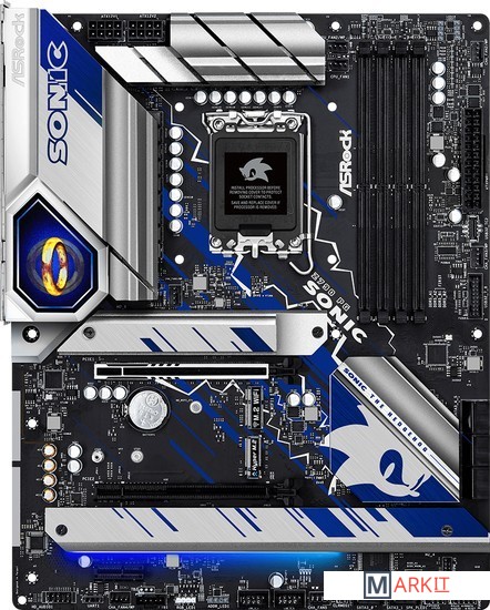 ASRock Z790 PG SONIC – это лицензионная материнка по мотивам игры «Sonic the Hedgehog» от SEGA. Задняя панель украшена знаменитыми 16-битными кольцами, а на обратной стороне платы нанесено изображение бегущего Соника. Компания ASRock выпустила эту материнскую плату в партнёрстве с SEGA в знак выхода новой игры «Sonic Frontiers».Материнская плата подарит воспоминания о приключениях на Зелёных холмах, а серебристо-синие изображения из игры символизируют общую скорость и стремительность.«Кольцо» – это предмет из игр про ёжика Соника. Происхождение колец неизвестно, однако, их можно найти в различных местах на Земле, в других мирах, а также на материнских платах!«14+1+1»-фазное питание с транзисторами Dr.MOSНадёжные компоненты обеспечивают ровное и плавное питание ЦП, а также широчайшие возможности для разгона и улучшенную производительность в современных играх при низких температурах.Двойные слои медиВнутренние медные слои удвоенной толщины обеспечивают стабильность сигнала и профилей мощности, а также низкие температуры и прирост эффективности при разгоне.ASRock Z790 PG SONIC создана для современных геймеров! Именно поэтому она получила наибыстрейший интерфейс PCI-Express 5.0 для топовых видеокарт и разъём Blazing M.2 для новых ультраскоростных накопителей NVMe SSDs.