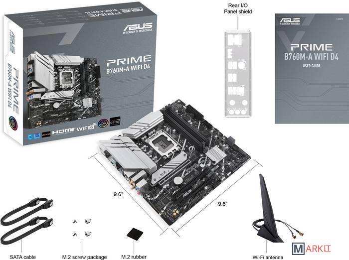 2 кабеля SATA 6 Гбит/с1 антенна ASUS Wi-Fi1 рамка разъемов1 резиновая упаковка M.21 пакет винтов для твердотельного накопителя M.21 руководство пользователя