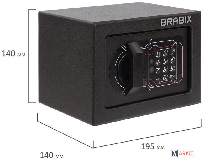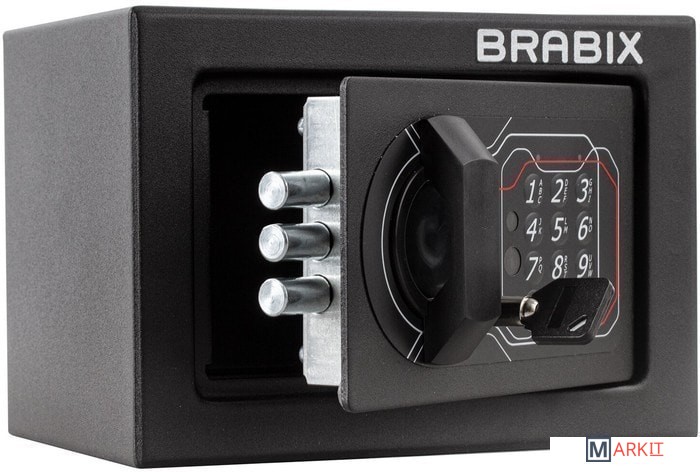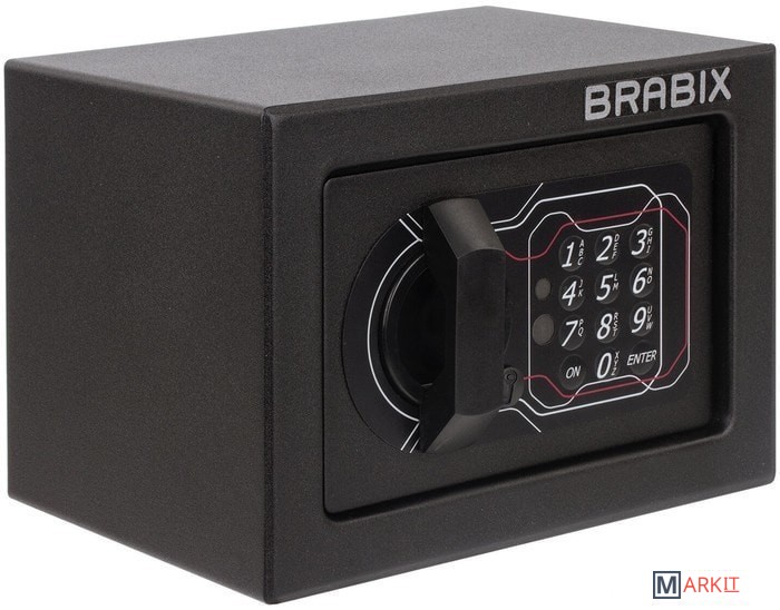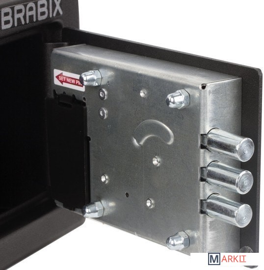 Мебельные сейфы BRABIX серии "SF" предназначены для хранения незначительных ценностей, документов и личного огнестрельного оружия. Могут использоваться как в офисе, так и дома.Изделие имеет ригельную систему запирания, диаметр ригелей до 20 мм.На сейф установлен электронный кодовый замок PLS-3 (Россия) со световой и звуковой индикацией, позволяющий запрограммировать свой уникальный код (от 4 до 8 знаков). В комплект входит аварийный мастер-ключ, на случай, если забыли код или вышли из строя элементы питания. Подробная инструкция по эксплуатации замка в комплекте.