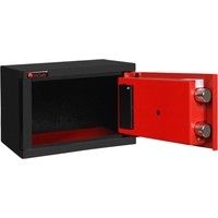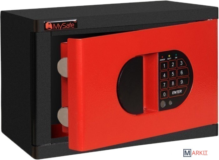 ● Толщина металла корпуса и двери - 2 мм.● Ригельная система, 2 активных хромированных ригеля, вращающиесядиаметром 25 мм.● Внутренняя петля-антисрез.● Анкерные узлы для крепления сейфа к стене и полу.● 2 кода пользователя в электронном кодовом замке.● Съемная дверь.● Стандартный цвет: корпус - черный (RAL 9005), дверь -красный (RAL 3000).