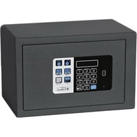 Модель оснащена электронным замком. Питание установки производится посредством четырёх батареек АА мощностью 1,5 В или же с подачей внешнего питания.Сейф оборудован светодиодным освещением, которое автоматически включается на 15 секунд при открывании сейфа.Если пользователь забыл код, то в сейфе предусмотрена возможность аварийного открывания при помощи мастер кода, который обычно устанавливает ответственное лицо отеля. Также сейф можно открыть с помощью механического ключа (приобретается дополнительно).В случае, если установленные в сейфе батарейки разрядились, и вы не успели их заменить — на лицевой панели сейфа есть разъём USB для подключения внешнего блока электропитания. Нужно подключить этот блок и открыть сейф кодом или мастер кодом.