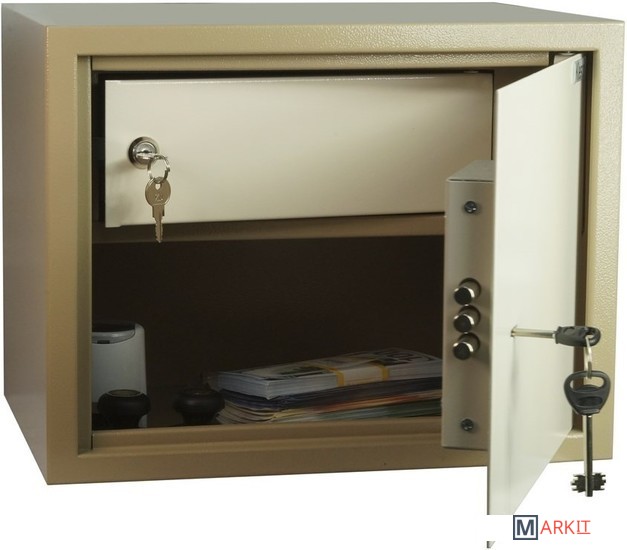 Предназначен для хранения документов и незначительных ценностей дома и в офисе.Корпус изготовлен из стального листа толщиной 1,2 мм, толщина лицевой панели двери - 3 мм.Дверь мебельного сейф Klesto 30TK запирается ключевым замком с двухригельной системой запирания.Конструкция сейфа предусматривает возможность анкерного крепления к полу и стене.На поверхность сейфа нанесено защитное износостойкое покрытие порошкового типа.