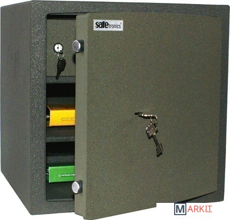 Внешний корпус изготавливается из металлического листа толщиной 3 мм, а внутренний из металлического листа толщиной 2 мм. Дверная панель изготовлена из металлического листа толщиной 10 мм., и, благодаря этому, данная серия сейфов соответствуют 1 классу защиты от взлома и обеспечивают начальную защиту от пожара.