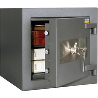 Отличительной особенностью представленной модели является трехсторонняя семиригельная усиленная система запирания. Ключевой замок немецкого производства оснащен стальными вставками, ригели также защищены от высверливания. Толстые стенки сейфа эффективно противостоят взлому. А закрепив Форт 50 KL к полу посредством анкеров, вы ещё больше обезопасите свое имущество. Модель выполнена в цвете графита.