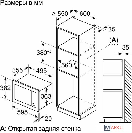 | Размеры ниши для встраивания |