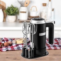 Стильный миксер Kitfort KT-3086 c винтажными элементами идеально впишется в любой кухонный интерьер и будет радовать своих хозяев. Для удобного хранения миксера и насадок в комплекте идёт подставка, а на самом миксере есть отсек для смотки шнура.Ручной миксер поможет вам смешать ингредиенты, взбить яичный белок или сливки, приготовить картофельное пюре, соус, крем, мусс, замесить жидкое тесто. В комплекте идут насадки для взбивания и перемешивания.У миксера на ручке расположен дисплей, на котором видно скорость и время работы, что очень удобно во время работы с ним. Прибор оснащён 6 скоростями, благодаря которым вы сможете выбрать подходящую скорость для взбивания или смешивания ингредиентов.