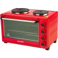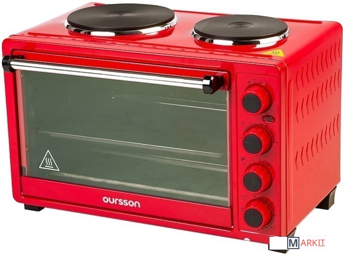 Электрическая мини-печь OURSSON MO3030 объемом 30 литров оснащена всеми необходимыми функциями и позволяет не только готовить блюда внутри печи, но и использовать конфорки. Мощность большой конфорки – 1000 Вт, маленькой – 600 Вт. Печь имеет 5 режимов приготовления. Благодаря конвекции выпечка пропекается более равномерно, получается вкусной и румяной, а время приготовления сокращается. Таймер с автоотключением позволяет задать время приготовления, а звуковой сигнал известит о завершении приготовления. В комплект входят: решетка, противни прямоугольный и круглый, вертел и две ручки для решетки и вертела.