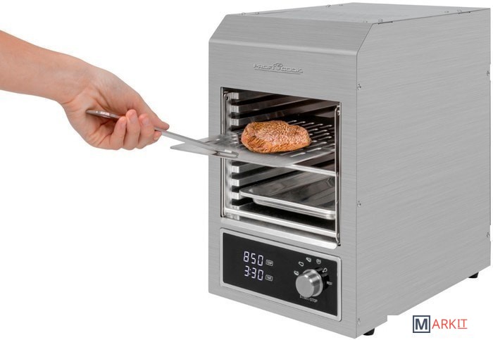 Превосходная температура для гриля - керамическая инфракрасная высокопроизводительная горелка обеспечивает температуру гриля до 850 ° C и позволяет вам отлично приготовить мясо.Многофункциональность - помимо идеального стейка, котлет для бургеров, филе, ростбифа или стейка на косточке, вы также можете использовать PC-EBG 1201 для приготовления запеканок, пиццы или овощей.