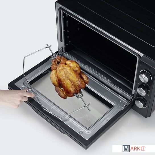 TO 2066 XXL Печь для выпечки и тостов60-литровая рабочая камера XXL для больших порций с внутренним освещением и высококачественным антипригарным покрытием для легкой очисткиидеальная хрустящая пицца благодаря входящему в комплект очень большому камню для пиццы ( 30,5 см) и функции нижнего/верхнего жарапростое приготовление цыплят на гриле с помощью функции гриля с включенным грилем и приводом для гриляШирокий выбор вариантов приготовления от картофеля фри до пирогов благодаря верхнему/нижнему нагреву, функции конвекции и прилагаемым решетке для гриля и противню.Мощность: около 2200 Втутепленный корпус2-часовой таймер с функцией автостопа для всех режимов
