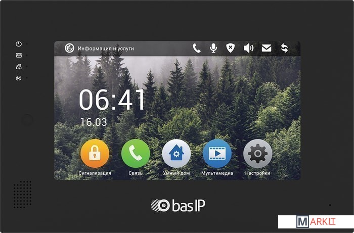 IP домофон c поддержкой PоE (Power over Ethernet) и возможностью подключения системы умного дома (контроль света, кондиционера, управление шторами). Работает в режиме фоторамки, имеет слот для SD карты.