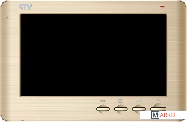 Цветной монитор видеодомофона 7" с детекцией движения. К монитору можно подключить одну или две вызывные панели, одну или две дополнительные внешние камеры, один или два датчика тревоги, дополнительный монитор или телевизор с композитным входом, а также до 3-х дополнительных домофонных мониторов марки CTV.В изделии предусмотрена возможность замены передней декоративной накладки. В комплекте предлагается 3 различных цветовых варианта.