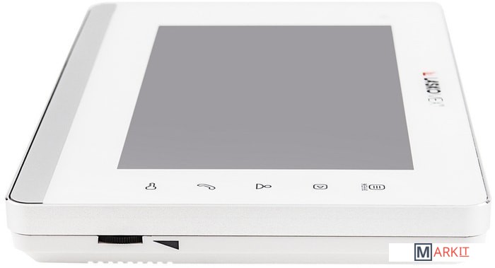 Монитор с металлической рамкой. Устройство поддерживает цифровые и координатные подъездные домофоны напрямую. Блок сопряжения в таком случае не требуется.
